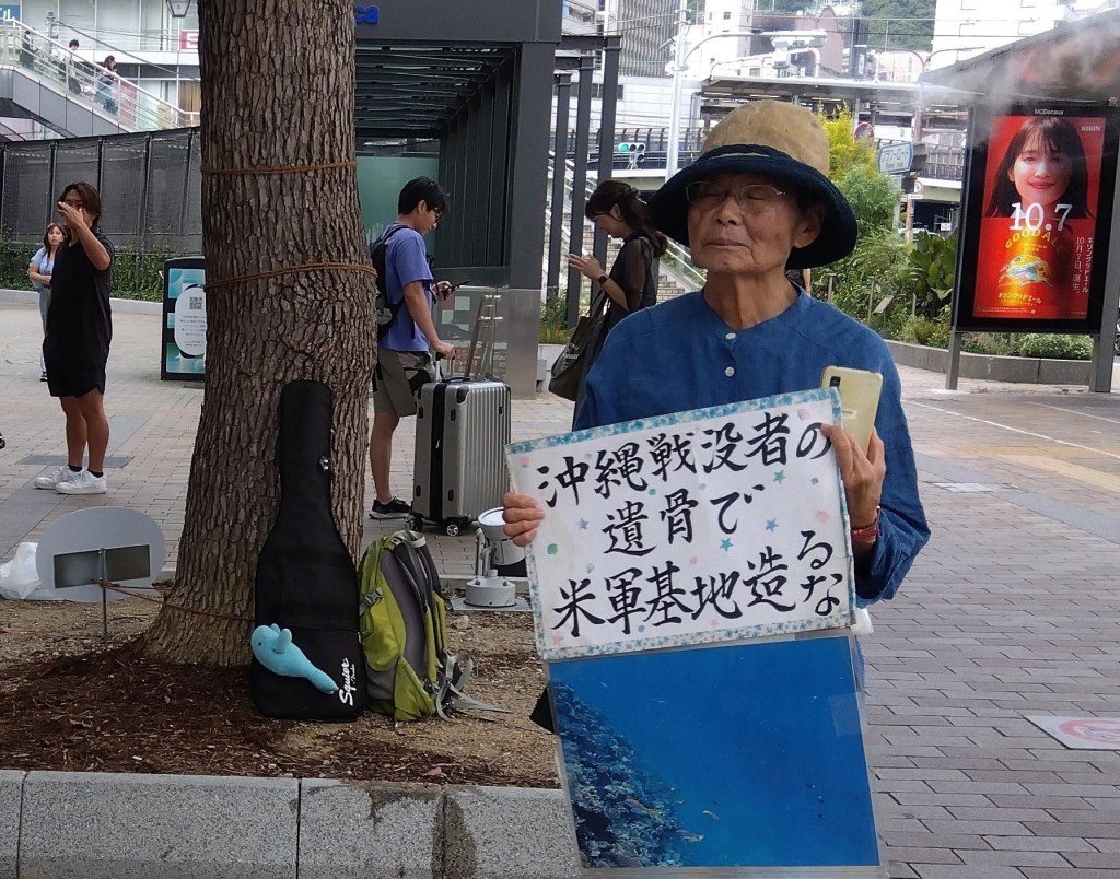 「日米統合軍事演習が行われ、戦争の準備が進んでいる」と危険性を訴え、『島人ぬ宝(しまんちゅうぬたから)』を歌いました。「全ての軍事基地をなくし、地球全体をお花畑にしよう」と訴える人、「唯一、核の被害を受けた日本が、平和憲法を掲げ世界平和実現をリードしていくべきだ」と訴え、故翁長知事の平和宣言を読み上げる人。メガホンを叩きながら「辺野古新基地、海を埋めたらいかん!埋めていいのは自民党」と叫ぶ人も。